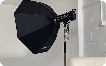 Если нужно, у нас есть петличные микрофоны DJI. 4K съемка ведется тремя камерами Sony A7C с разнообразной оптикой, что позволяет снимать с высокой детализацией и точной цветопередачей. Студийный свет создается благодаря LED освещению от Amaran, которое позволяет формировать нужную световую схему, включая цветовые акценты.