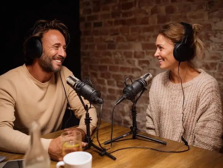 Аренда студии подкастов, интервью, лекций и другого контента. Чистый тёплый звук, качественная картинка