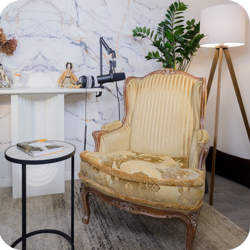 Аренда студии подкастов, интервью, лекций и другого контента. Чистый тёплый звук, качественная картинка